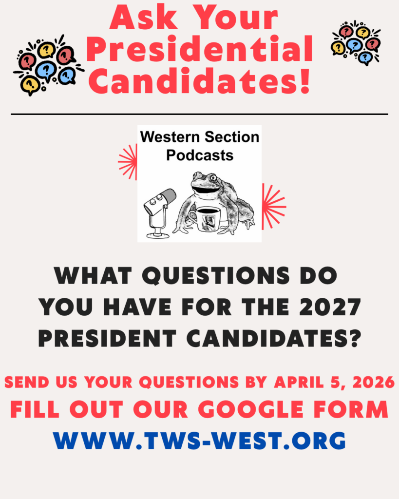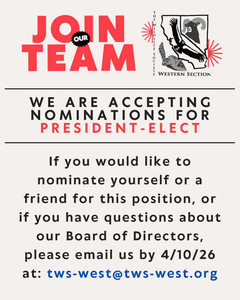- 73rd Annual Meeting of TWS-WS in Monterey, CA – February 2-6, 2026. Link to Meeting Website